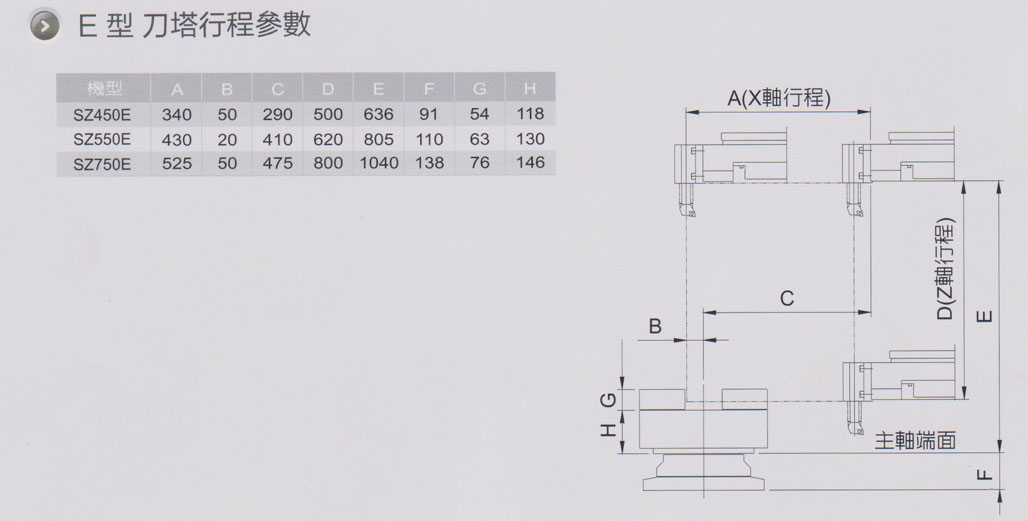 E型刀塔(ta)(卧式刀(dao)塔) 轉盤(pán)式刀塔(tǎ)設計有(yǒu)就近選(xuan)刀功能(neng),節省非(fei)切削時(shí)間。刀🏃塔(tǎ)采🔴用高(gao)剛性高(gāo)強度齒(chi)型離合(hé)器定位(wèi)精度高(gao)重複性(xing)高展現(xiàn)出最好(hao)加工能(néng)力。相關(guan)特性在(zai)汽車零(líng)件加工(gōng)業效率(lü)更🛀爲顯(xian)著,例如(rú)刹車盤(pán)、刹車鼓(gu)、輪毂、轉(zhuǎn)向節...等(deng)加工。